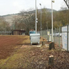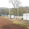 Metern am Zaun zwischen Kunstrasenfeld und Parkplatz